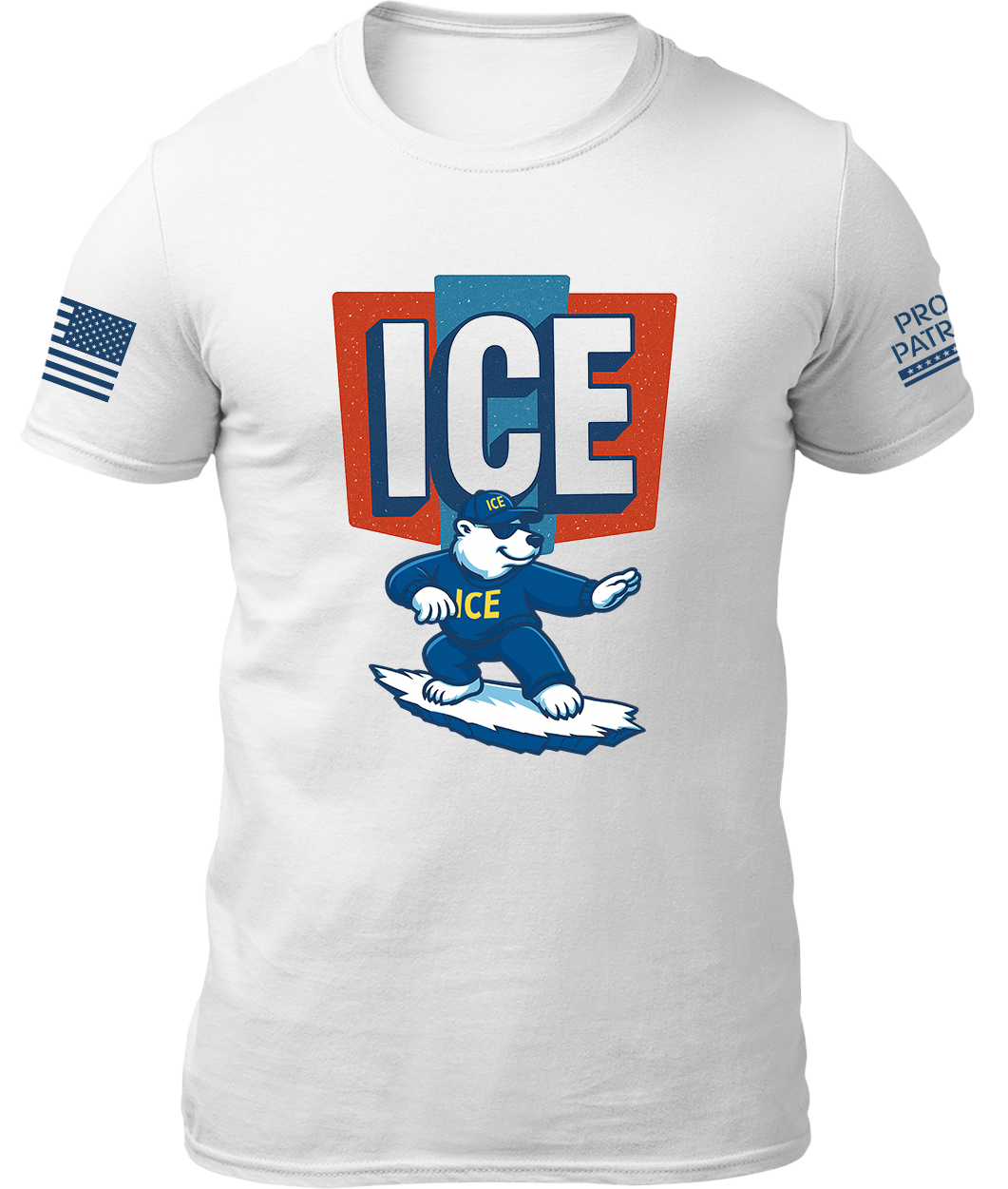 Proudly printed and shipped in America, with an American Flag and Proud Patriots logo on the sleeves!