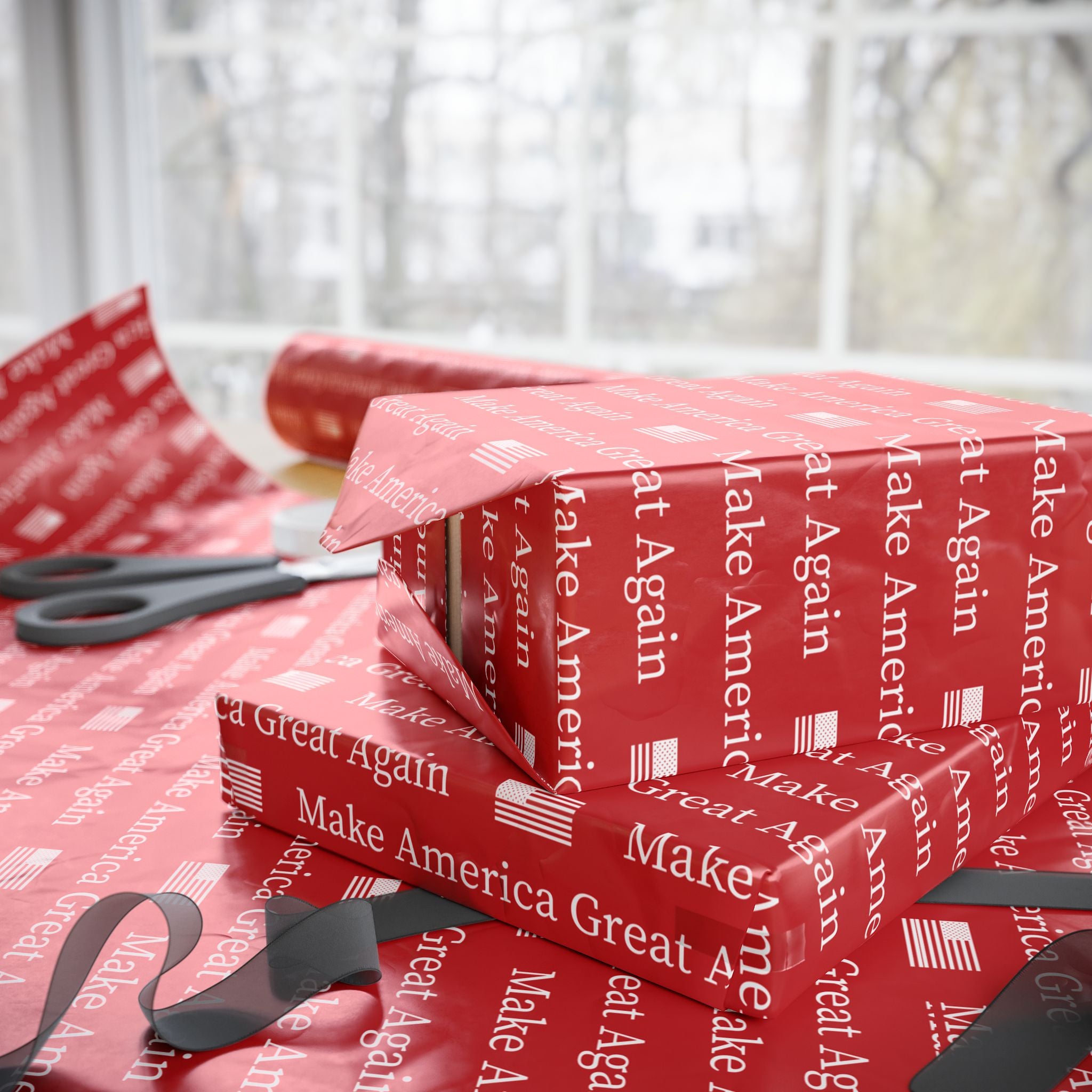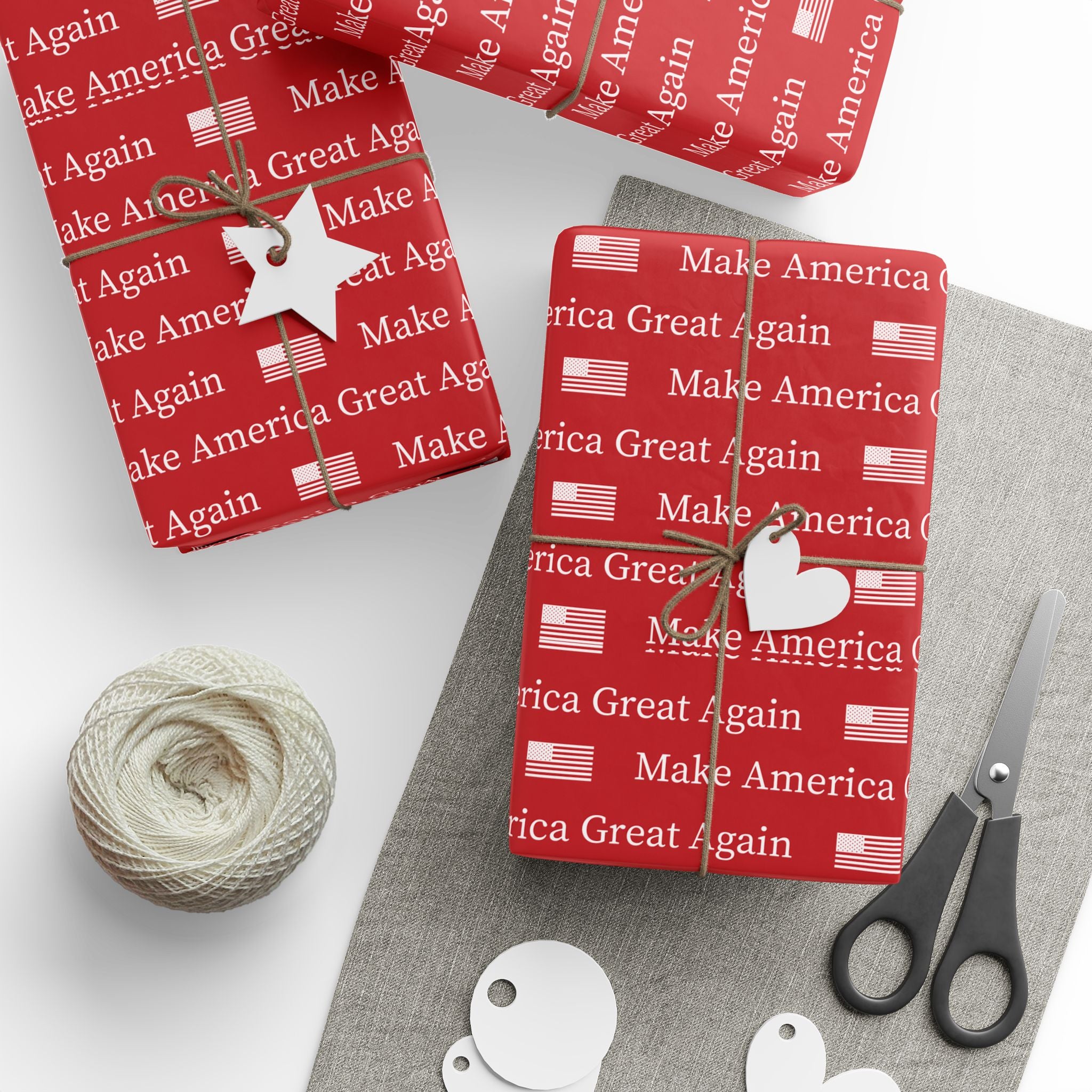 Make every gift a statement with this bold and patriotic Make America Great Again Wrapping Paper. Featuring a striking red background with repeating text and American flag motifs, this paper captures the spirit of pride and celebration. Whether you’re wrapping holiday gifts, birthday surprises, or special keepsakes, this design adds unmistakable flair and energy to every package.