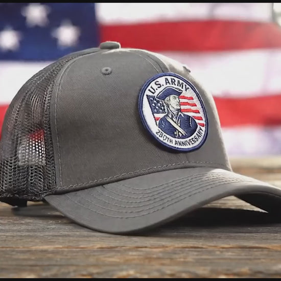 Celebrate the U.S. Army’s 250-year journey of valor, duty, and dedication with the Heritage Edition 250th Anniversary Patch Hat. Featuring a vintage-style patch of a Revolutionary War soldier proudly backed by the American flag, this hat is a powerful tribute to where the Army began — and how far it has come.