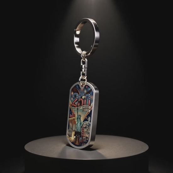 Celebrate 250 years of American independence with a striking keepsake designed to honor our nation’s past, present, and future. This beautifully crafted dog tag keychain captures iconic symbols of freedom and perseverance, making it more than jewelry — it’s a statement of pride and legacy.