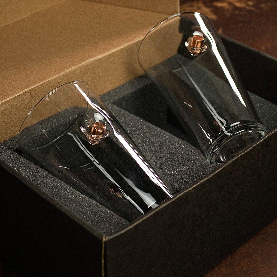 Glasses come individually packaged in a sturdy, kraftboard display box ready for gifting.