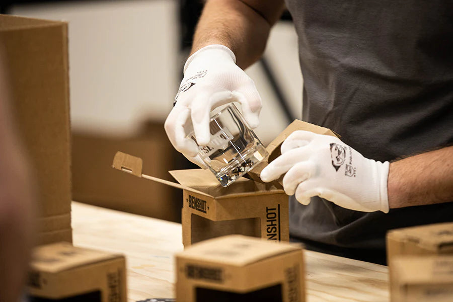 When it comes to American manufacturing, they stick to their guns. Every BenShot glass is handmade, one at a time, in their glass workshop in Wisconsin. This makes each piece truly one of a kind; no two glasses are alike! High-quality, crafted with care, and infused with pride by the person who made it - that’s how they do things at BenShot.