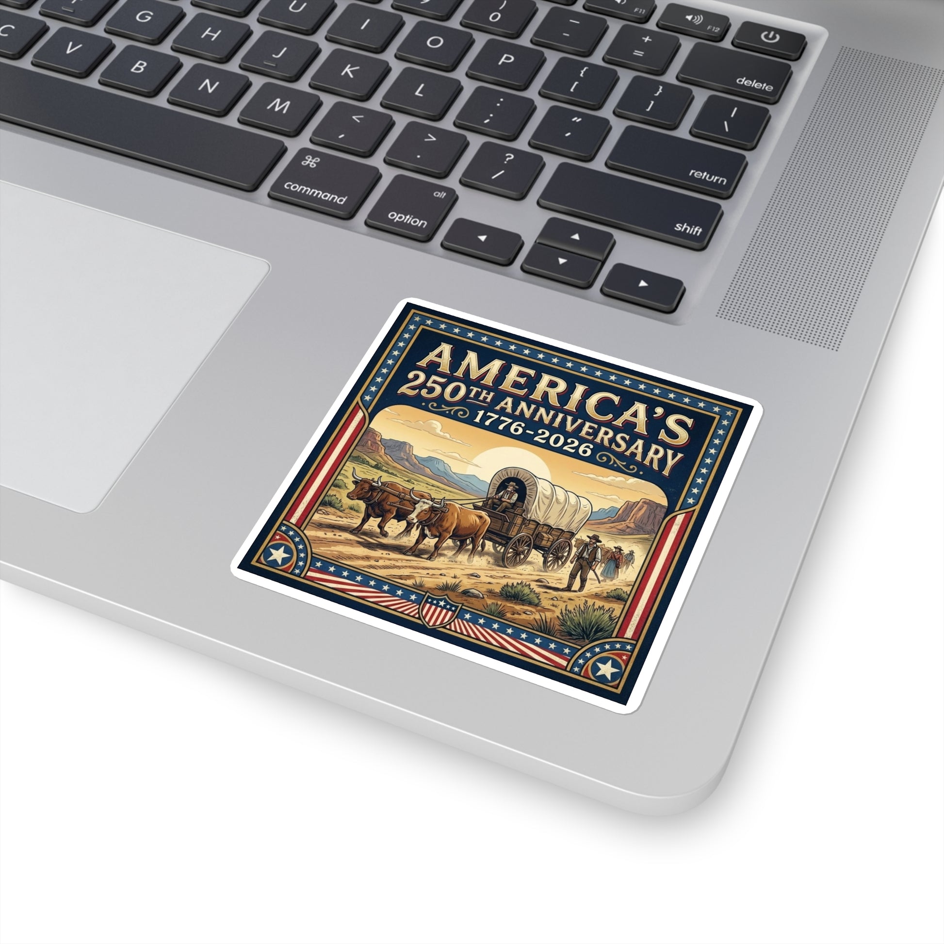 Frontier Wagon - America 250th Anniversary Square Sticker – Proud Patriots