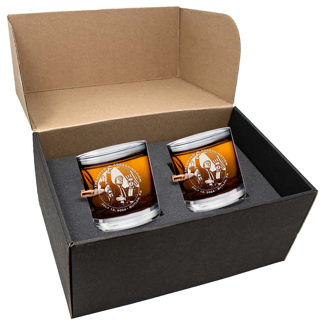 Bulletproof Trump Assassination Attempt Whiskey Glass (2-Sided) – Proud Patriots